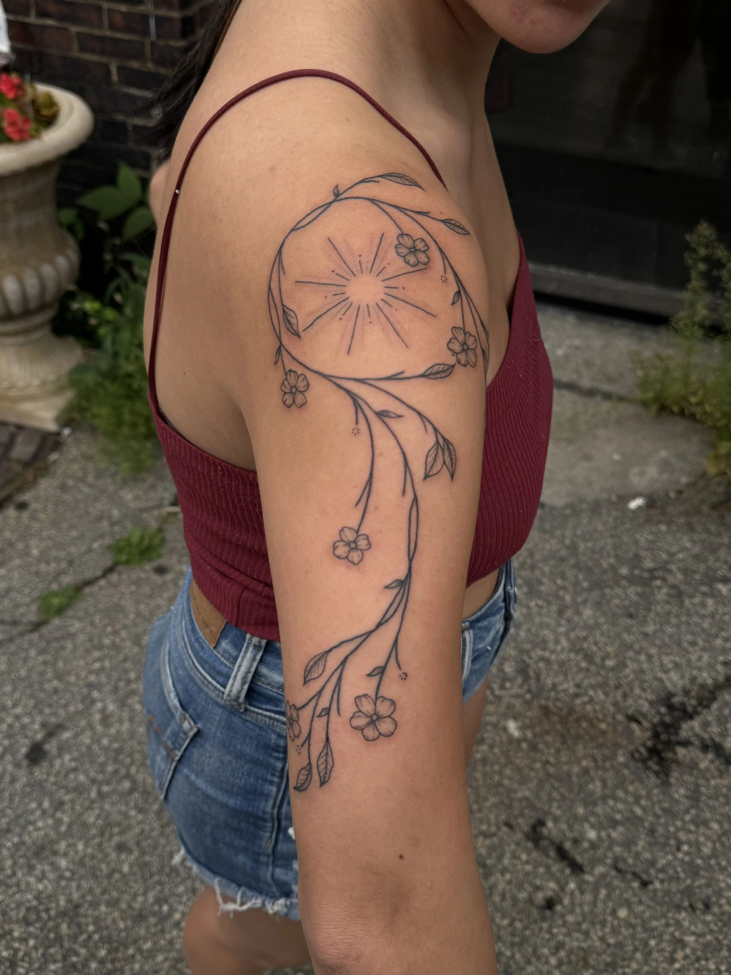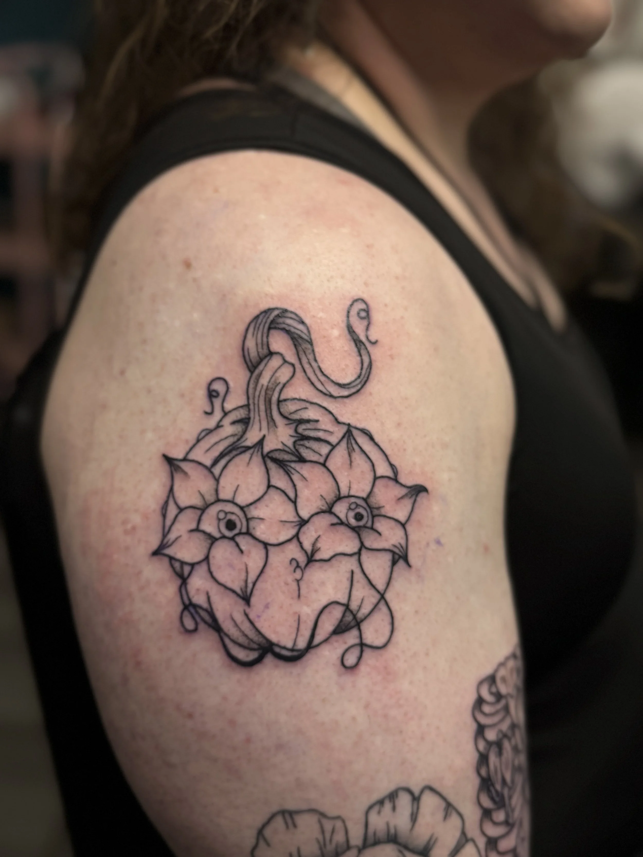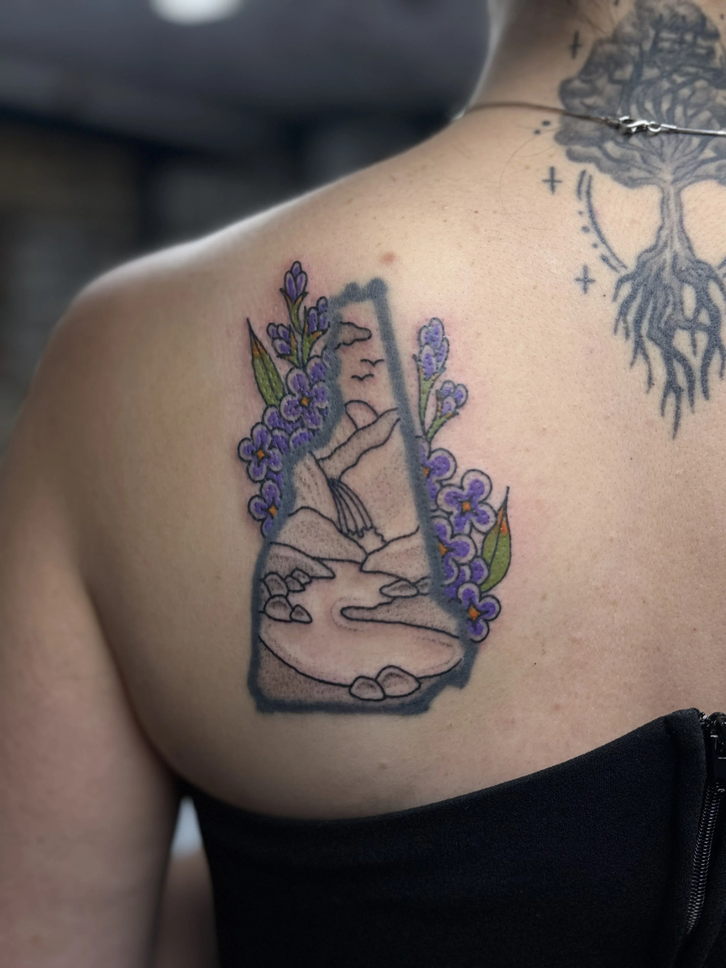 Hey! I’m Savi and I’ve been tattooing since 2022. I apprenticed under my partner, Jimi. For as long as I’ve remembered, I’ve always wanted to be a tattoo artist, but they don’t ever present it as a career option in High School. I come from a small line of artists and art-aligned folks. My grandfather used to paint the gold dome in Concord, NH on the state building and even painted in his free time. My grandmother, someone I consider an art hobby collector has done a wide variety of art, including, but not limited to knitting, rubber stamping, card making, sewing, etc. And my mother, someone I hold very dearly to me, both personally and artistically has always been incredibly creative and I owe a lot of my creativity to her.