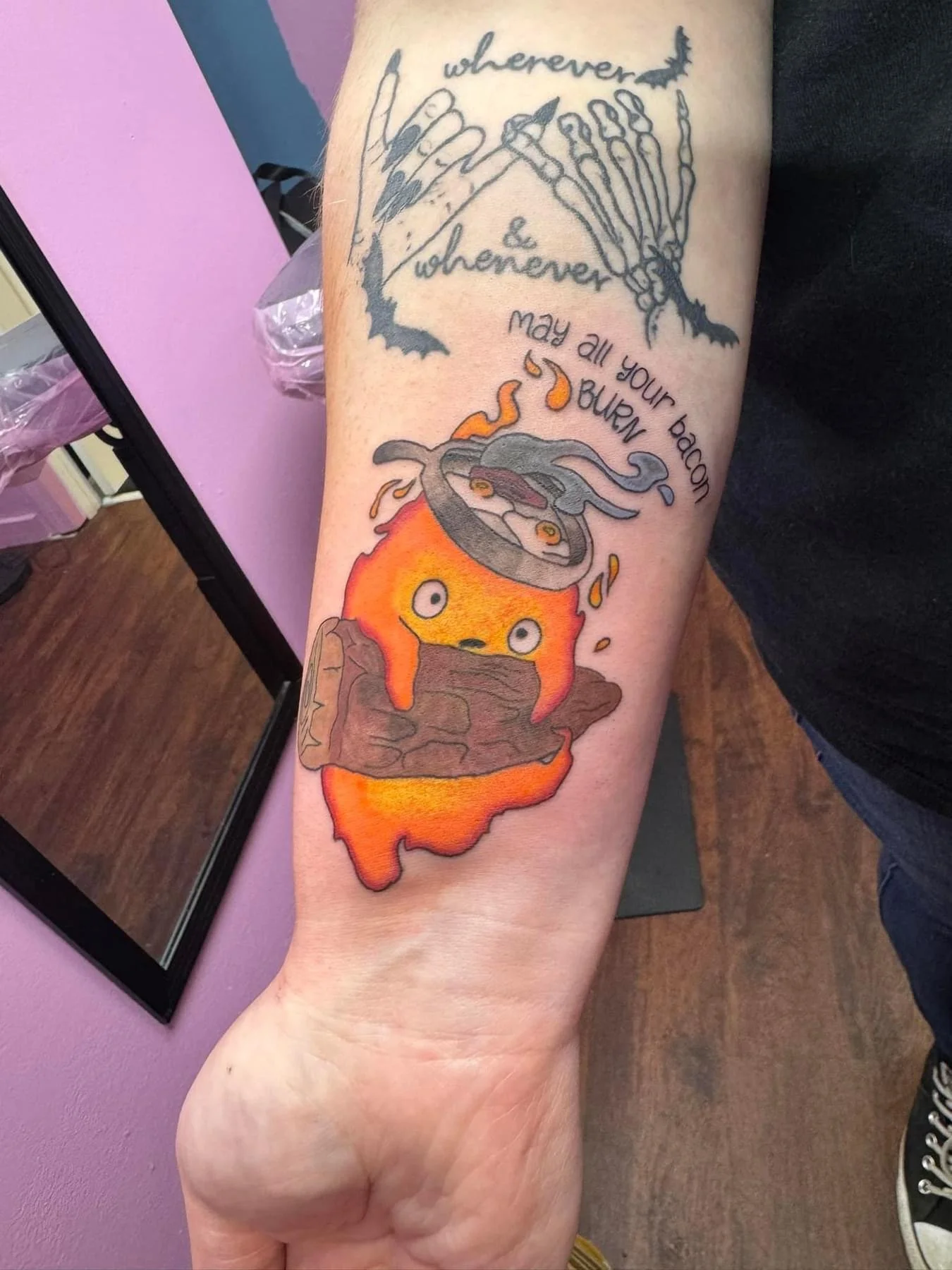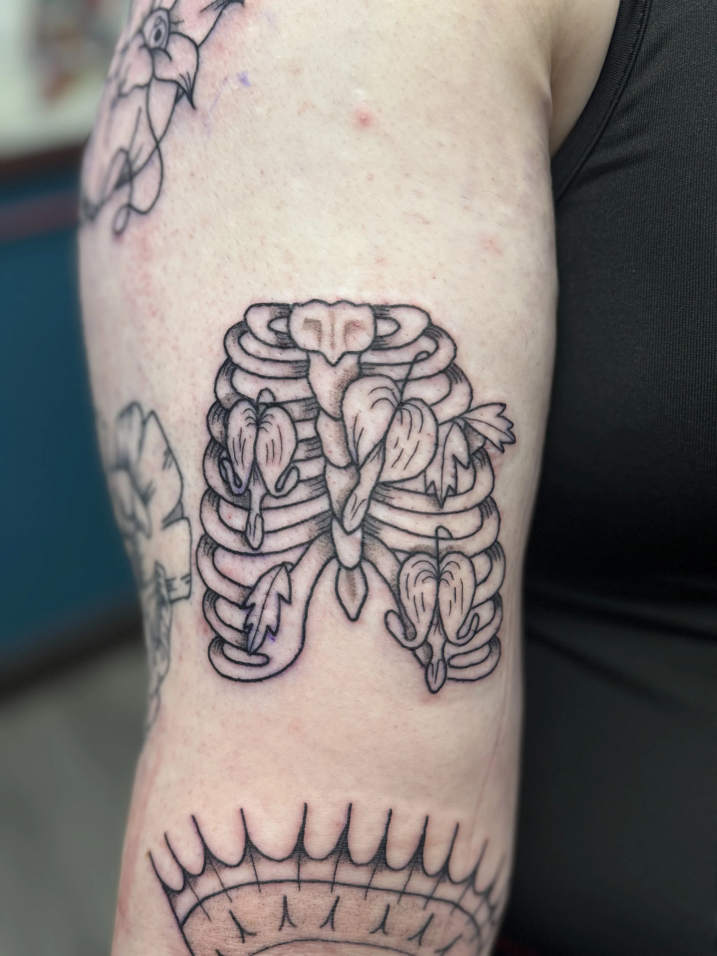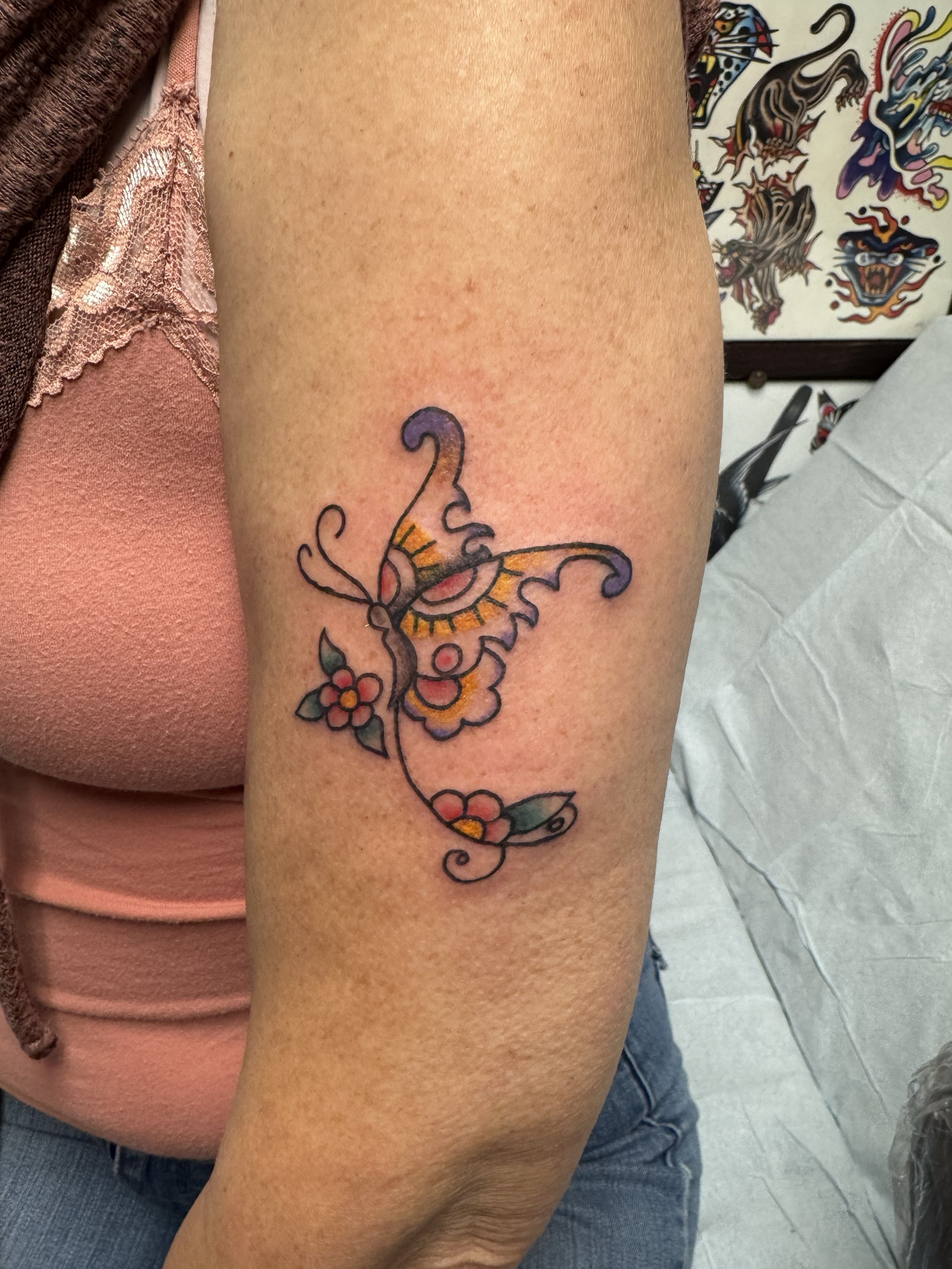 Hey! I’m Savi and I’ve been tattooing since 2022. I apprenticed under my partner, Jimi. For as long as I’ve remembered, I’ve always wanted to be a tattoo artist, but they don’t ever present it as a career option in High School. I come from a small line of artists and art-aligned folks. My grandfather used to paint the gold dome in Concord, NH on the state building and even painted in his free time. My grandmother, someone I consider an art hobby collector has done a wide variety of art, including, but not limited to knitting, rubber stamping, card making, sewing, etc. And my mother, someone I hold very dearly to me, both personally and artistically has always been incredibly creative and I owe a lot of my creativity to her.